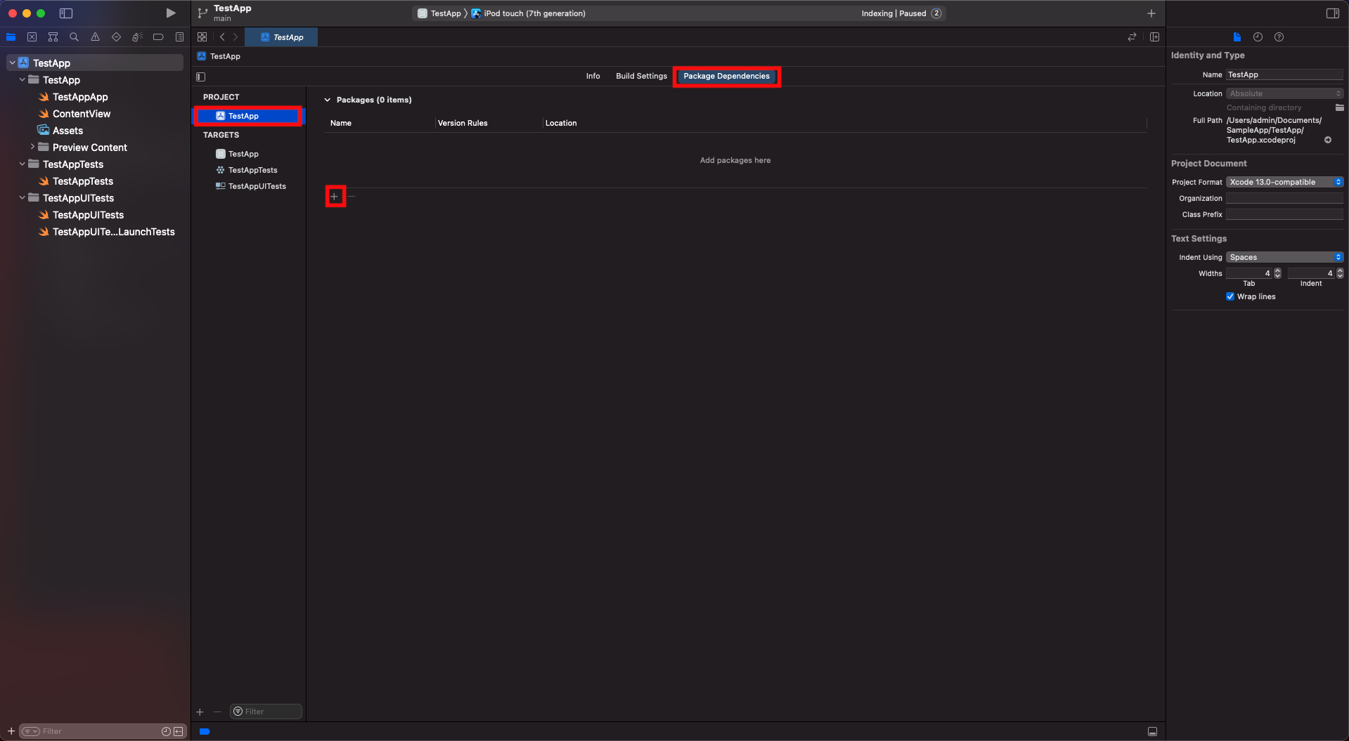 - Go to the Swift packages tab and click on the + button.