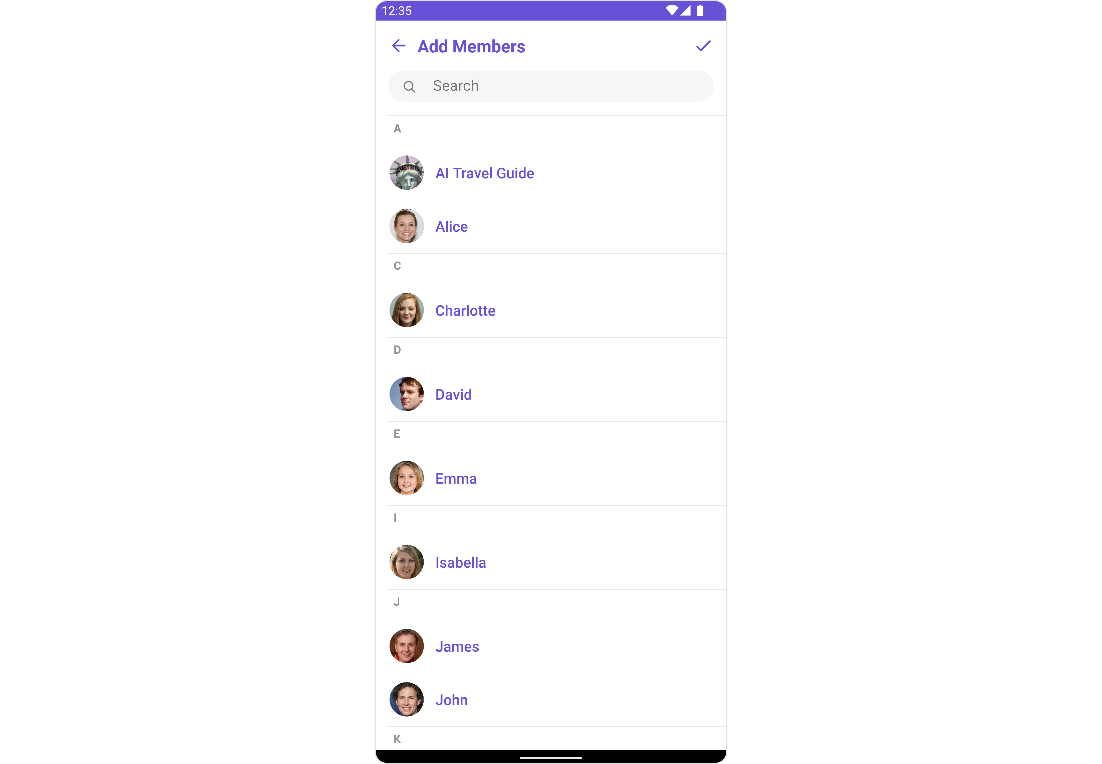 For advanced-level customization, you can set custom views to the component. This lets you tailor each aspect of the component to fit your exact needs and application aesthetics. You can create and define your own views, layouts, and UI elements and then incorporate those into the component. TheAdd Members component does not provide additional functionalities beyond this level of customization.